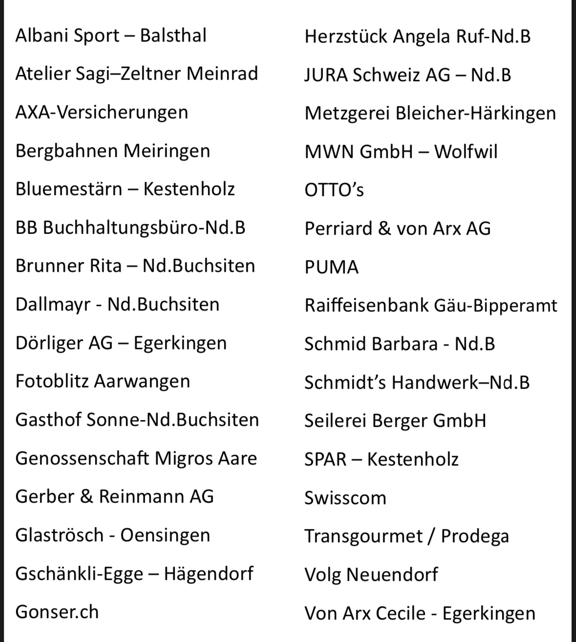 Die Dorfchilbi Niederbuchsiten bedankt sich bei allen Tombola-Sponsoren recht herzlich: