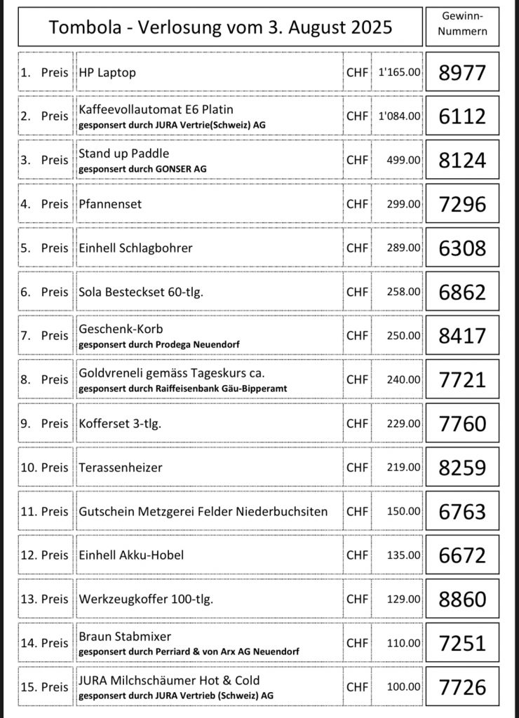 Eine Chilbi ohne Tombola ist schlicht unvorstellbar!